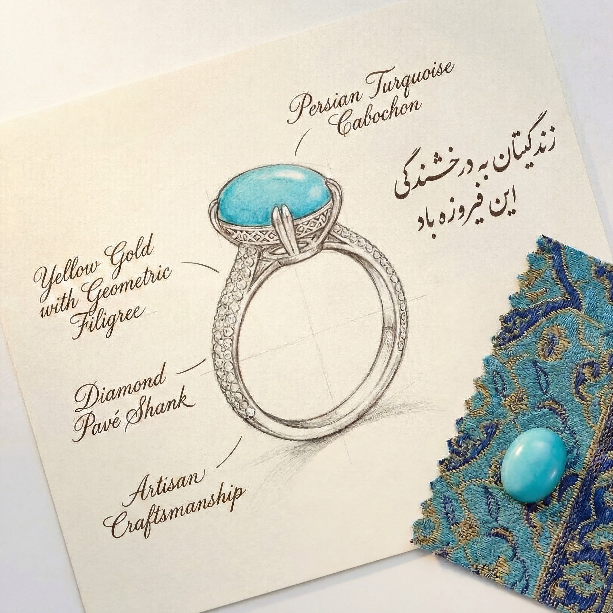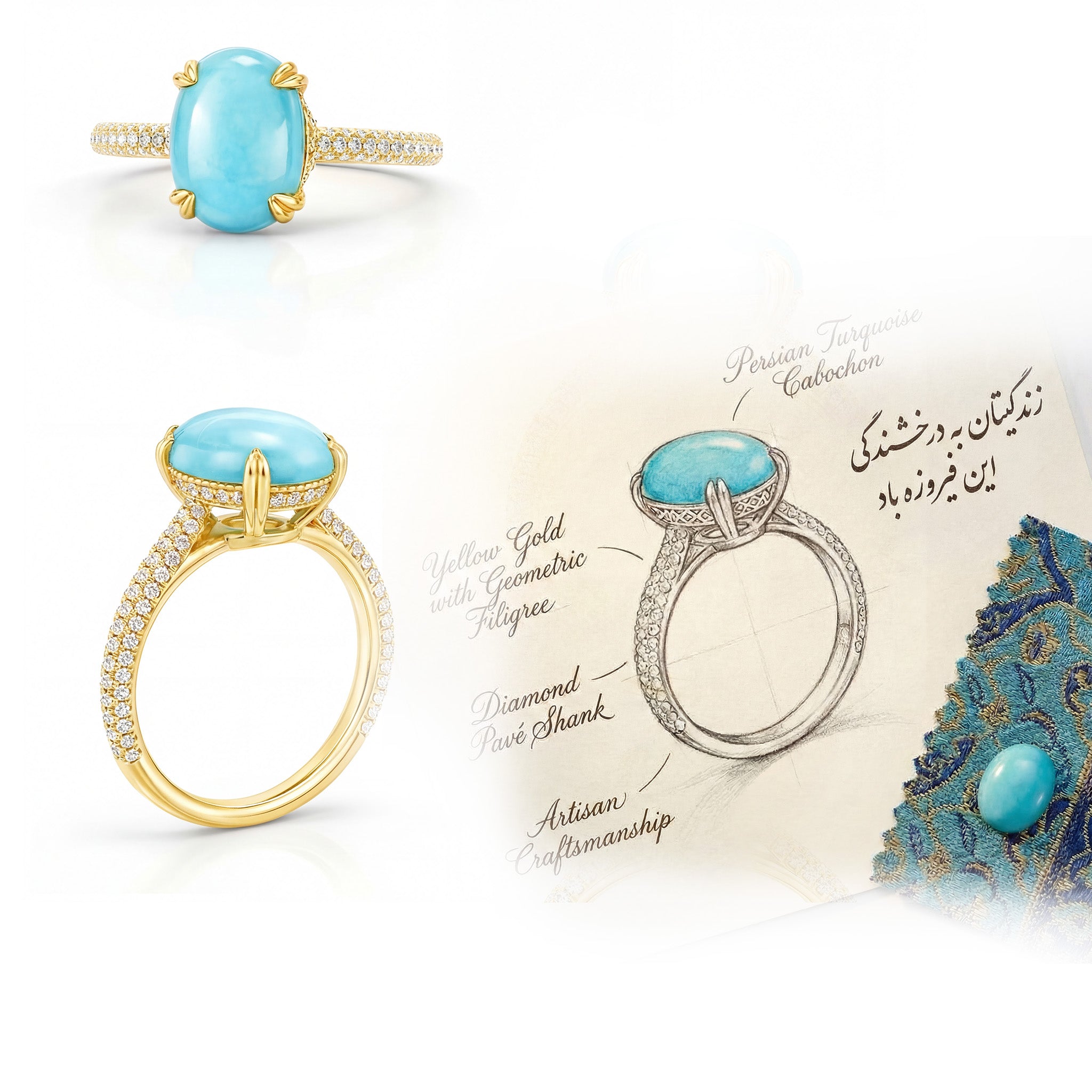 Explore authentic Persian turquoise, gemstones, and 18ct gold.
